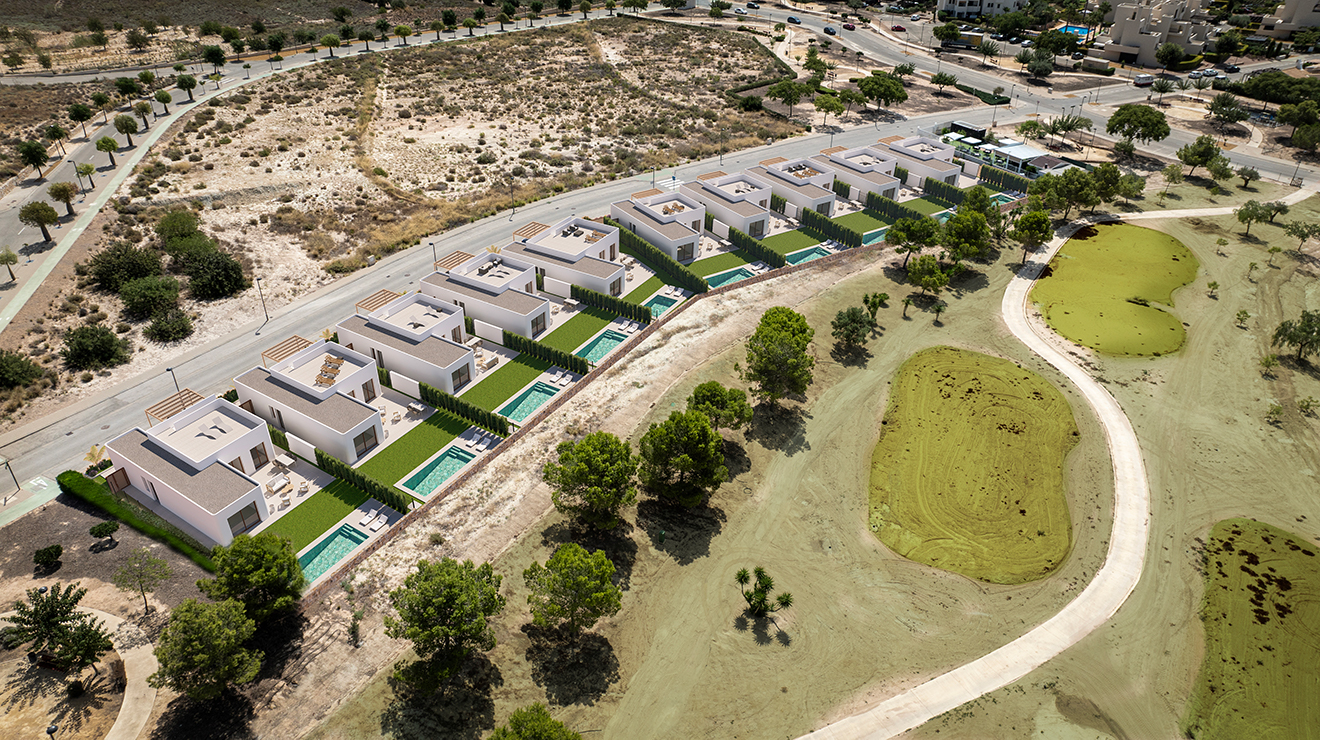 Nuestras promociones inmobiliarias están pensadas para un estilo de vida mediterráneo premium. Villas de diseño moderno, con el máximo confort y la mejor ubicación: con vistas al campo de golf de Corvera Hills Golf. Aportamos un diseño que suma, con viviendas adaptadas al clima y pensadas para crear ese hogar que abraza y cobija.